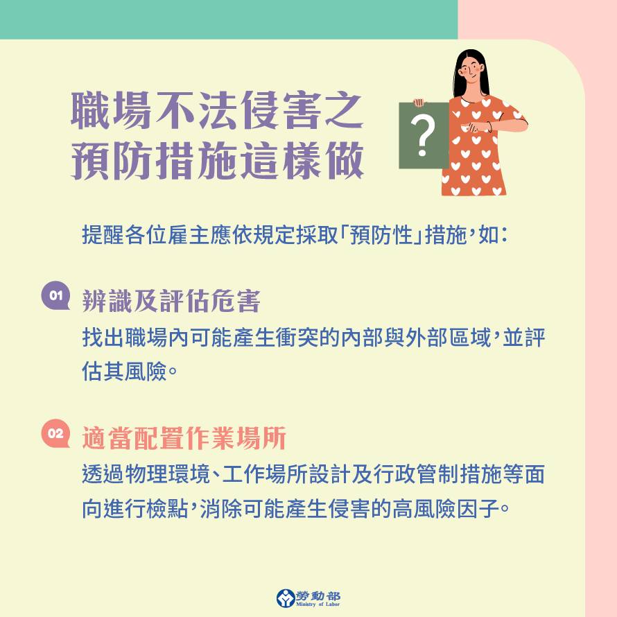 勞動部早前也修訂了「執行職務遭受不法侵害預防指引」,並強調職場霸凌及不法侵害防治著重前端「預防」,從行為規範、教育及強化行政管理等多方面著手,減少並預防職場霸凌事件發生。