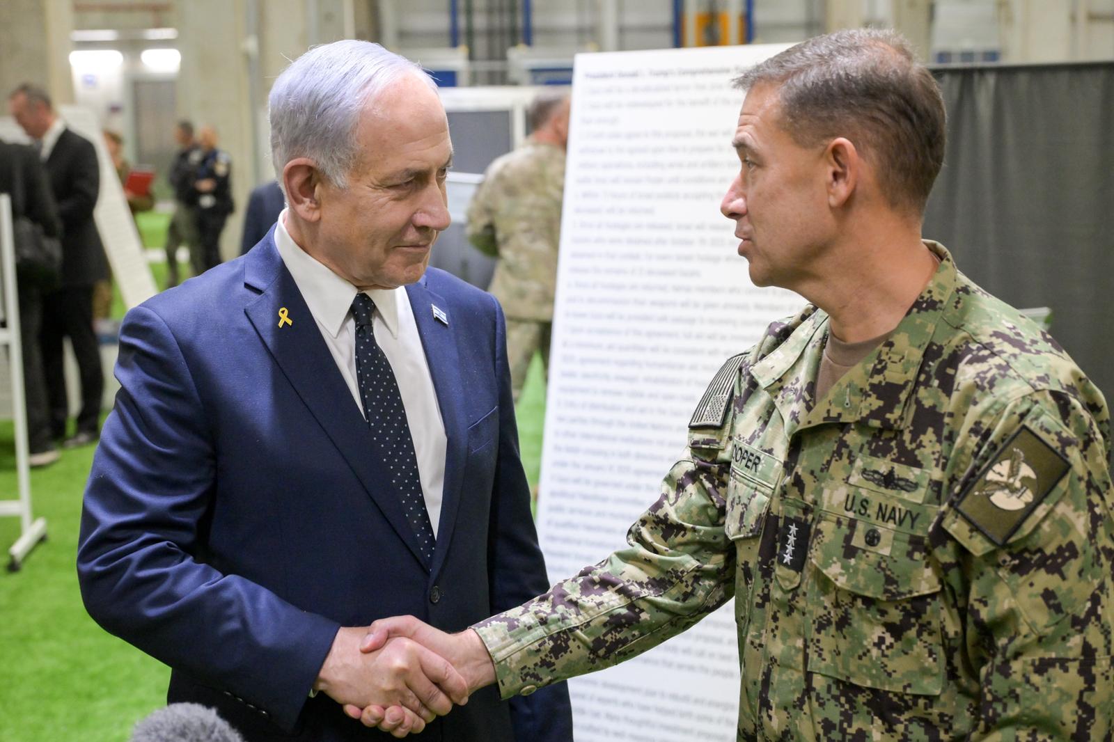 以色列總理納坦雅胡(左)到訪美國中央司令部時表示,以色列尋求解除哈馬斯在加薩地帶的武裝。圖:facebook@IsraeliPM