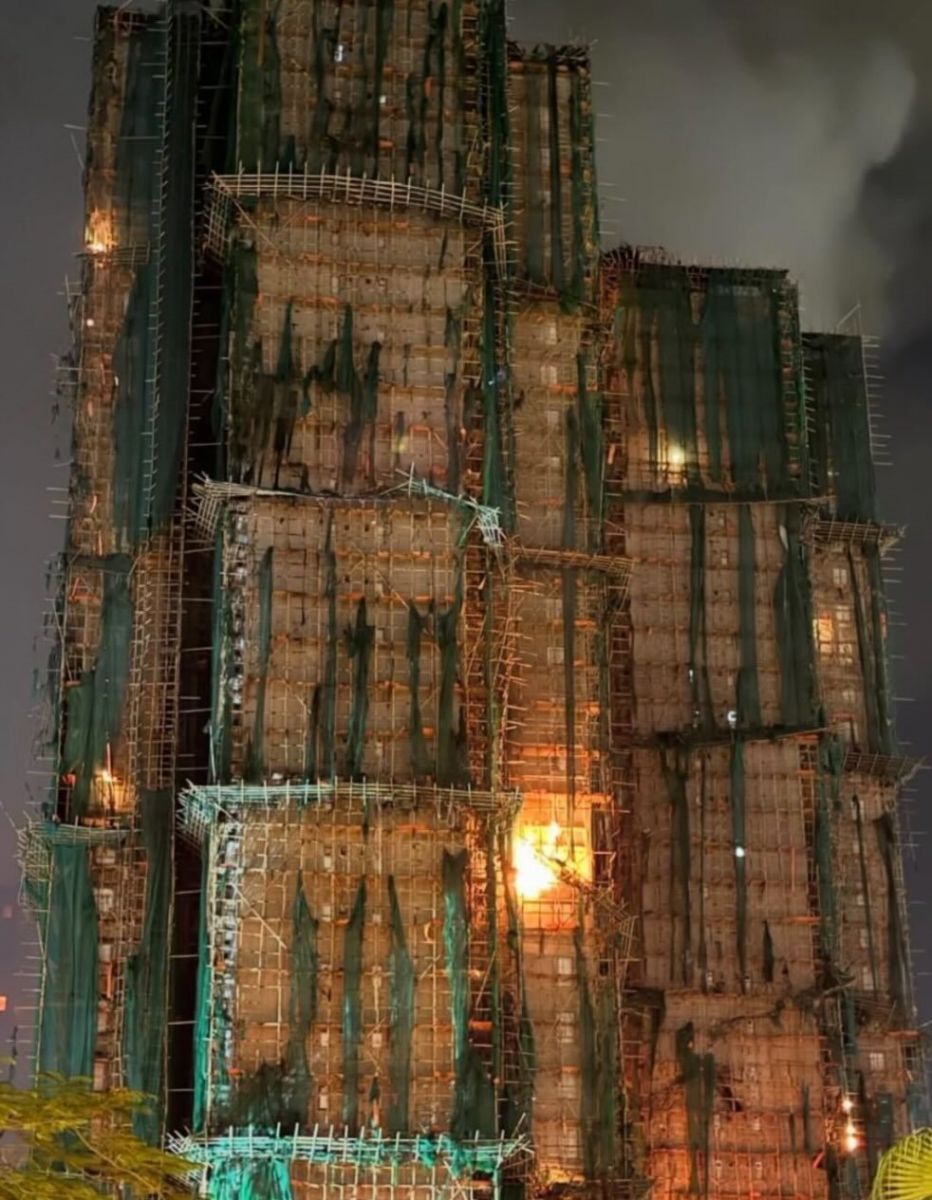 香港大埔宏福苑發生火災時正進行大維修工程。圖:Threads消防處副處長陳慶勇表示,宏福苑只有一座大樓未受波及, 4座大樓火勢受控,搜救及救火工作仍在進行。另外,醫管局已啓動重大事故控制中心,統籌安排9間公立醫院急診室戒備,協調救護工作。