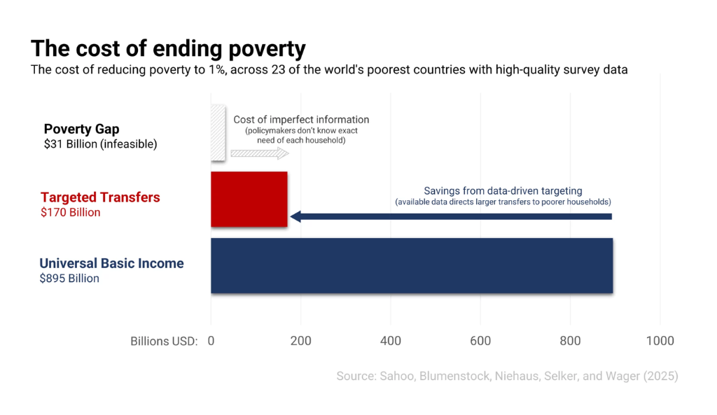 針對全球貧困問題,美國「全球有效行動中心」(Center for Effective Global Action)在〈消除極端貧窮需要付出多少代價?〉(What Would it Cost to End Extreme Poverty?)指出,只需付出0.3%的全球GPD,全球貧窮率就會從10%減少至1%,消除貧困出乎意料地簡單。