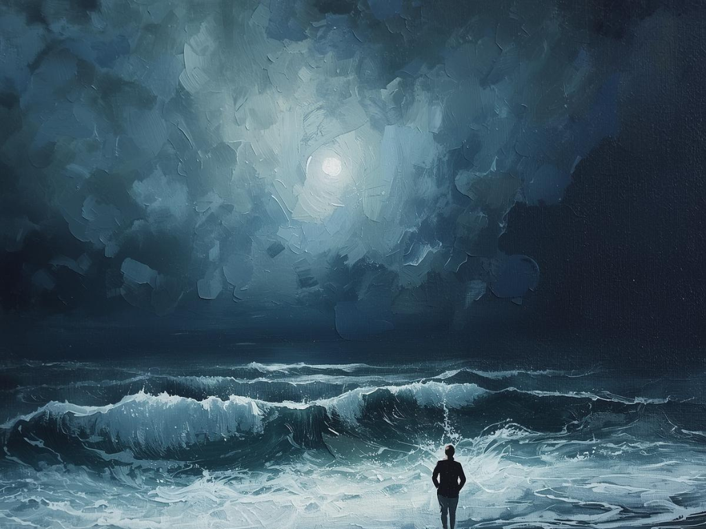 在馬太福音 14 章 22 節至 26 節,耶穌催促門徒上船渡到對岸,然後祂獨自上山禱告。因風不順,門徒的船被風浪搖撼。夜裡四更天,耶穌在海面上走,往門徒那裡去。門徒看見祂在海面上走,以為是鬼怪,便害怕。