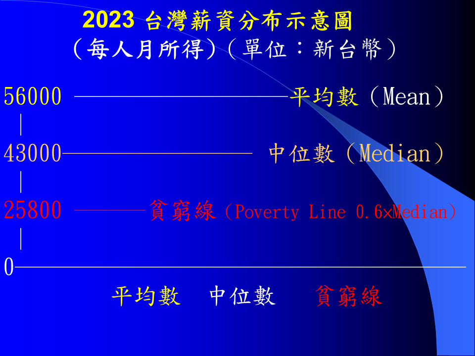 在震盪中,中低收入者最受傷害。而台灣的產業結構M型化,擴大了貧富差距,薪資結構長期停滯,與日本、韓國和美國相比,我國薪資平均數(新台幣56,000元)遠高於中位數。