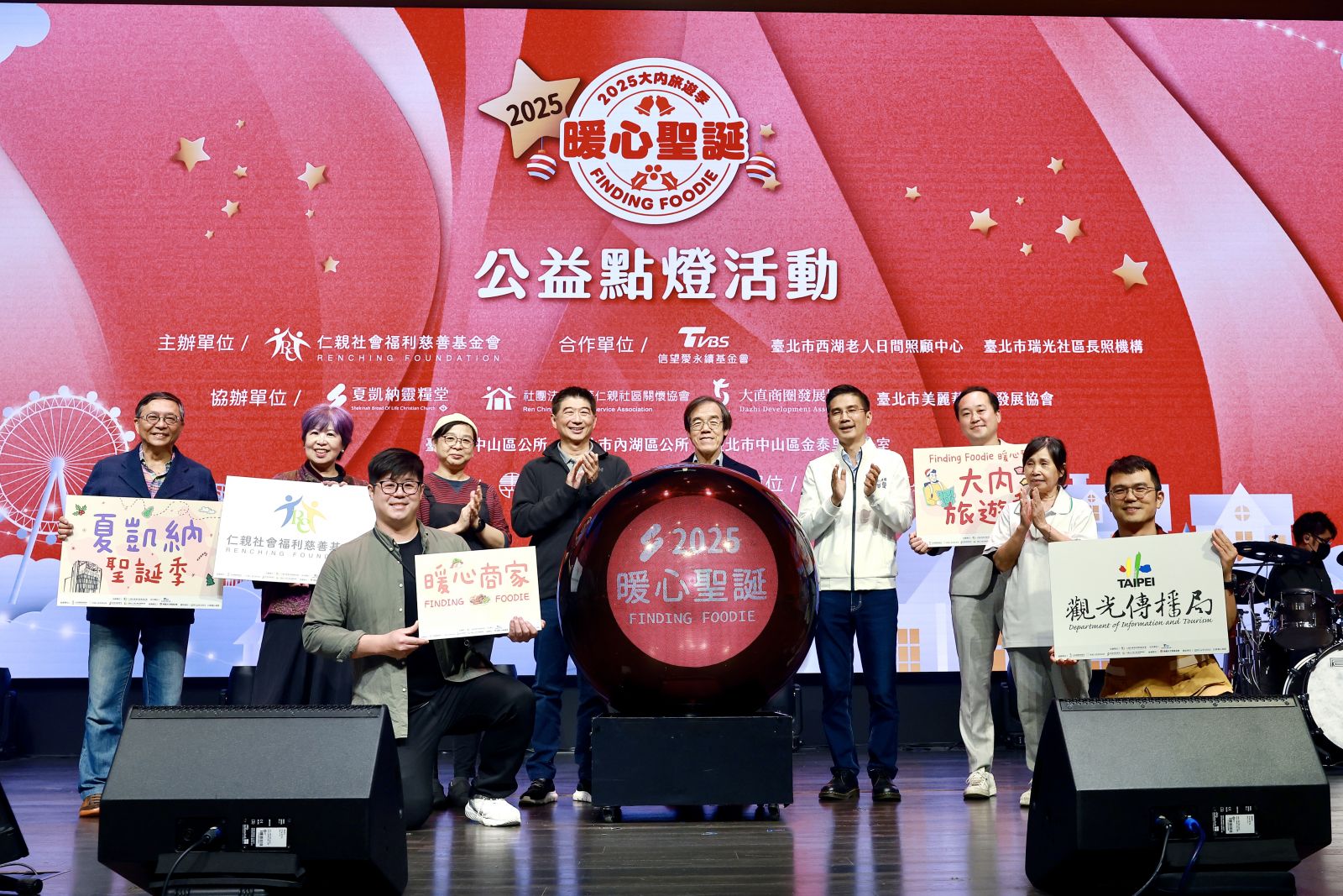Finding Foodie暖心聖誕公益點燈活動,由震撼人心的〈暖心聖誕讚鼓〉揭開序幕,並帶來多首喜樂的聖誕詩歌,將節慶氛圍推向高潮。重頭戲「聖誕公益點燈儀式」由夏凱納靈糧堂劉群茂主任牧師、仁親社會福利慈善基金會張安慈執行長、臺北市議員陳炳甫議員、曾獻瑩議員,以及大直、內湖商圈暖心商家代表:一鷺串燒 Frank社長、來來豆漿葉立淇老闆、荳內早餐洪躍維老闆、瑪哪咖啡簡良佑老闆、食字路口健康果汁林靜玲老闆等,共同點亮夏凱納聖誕燈海,象徵著「Finding Foodie暖心聖誕公益行動」正式啟動。