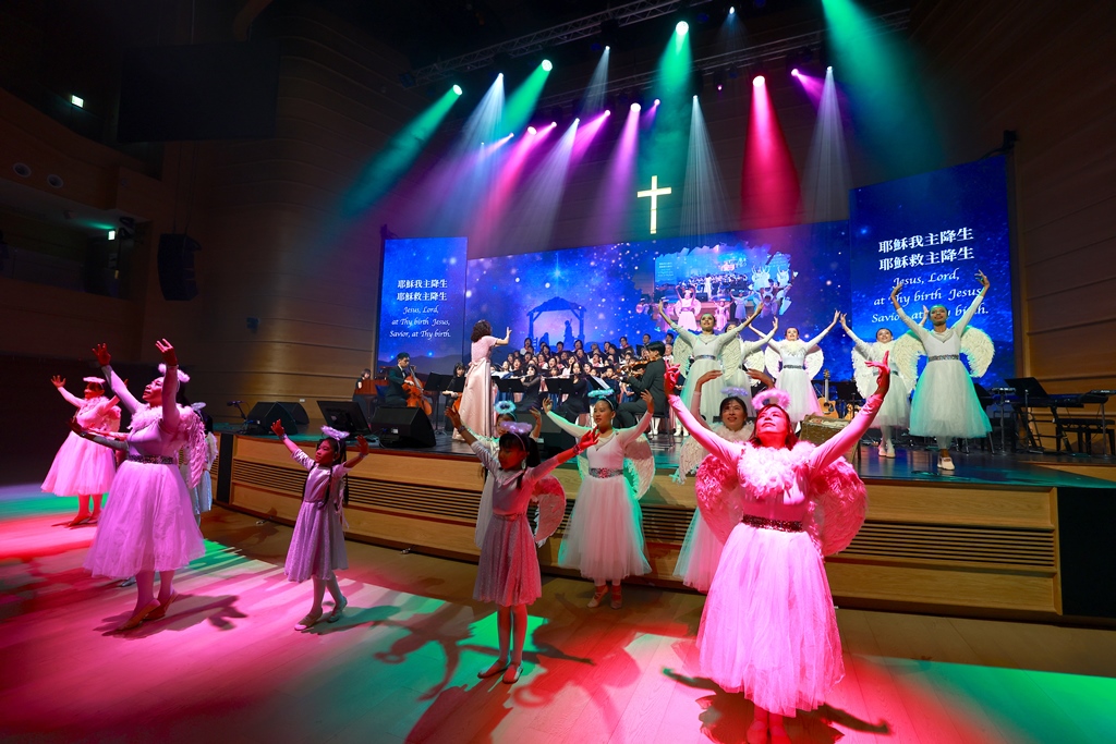 兒童、青年、成人與長者跨世代同台獻唱,展現聖誕節合一、盼望與平安的核心精神。圖:夏凱納靈糧堂