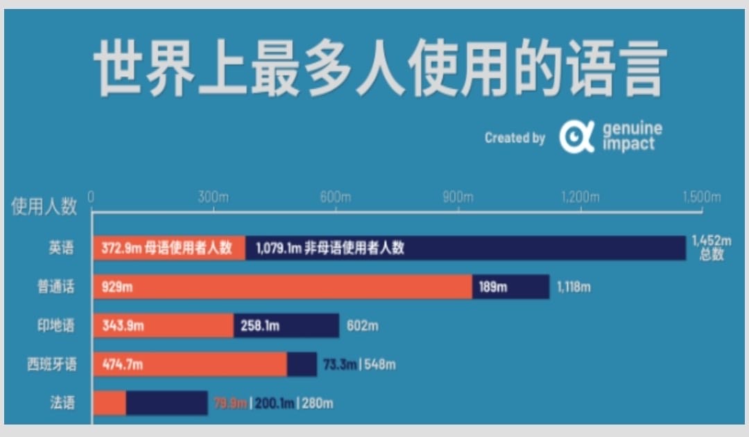 世界最多人的母語為普誦話。圖:知乎@Genuine Impact國度復興合一禱告聯盟(原《國度復興報》)Facebook粉絲專頁