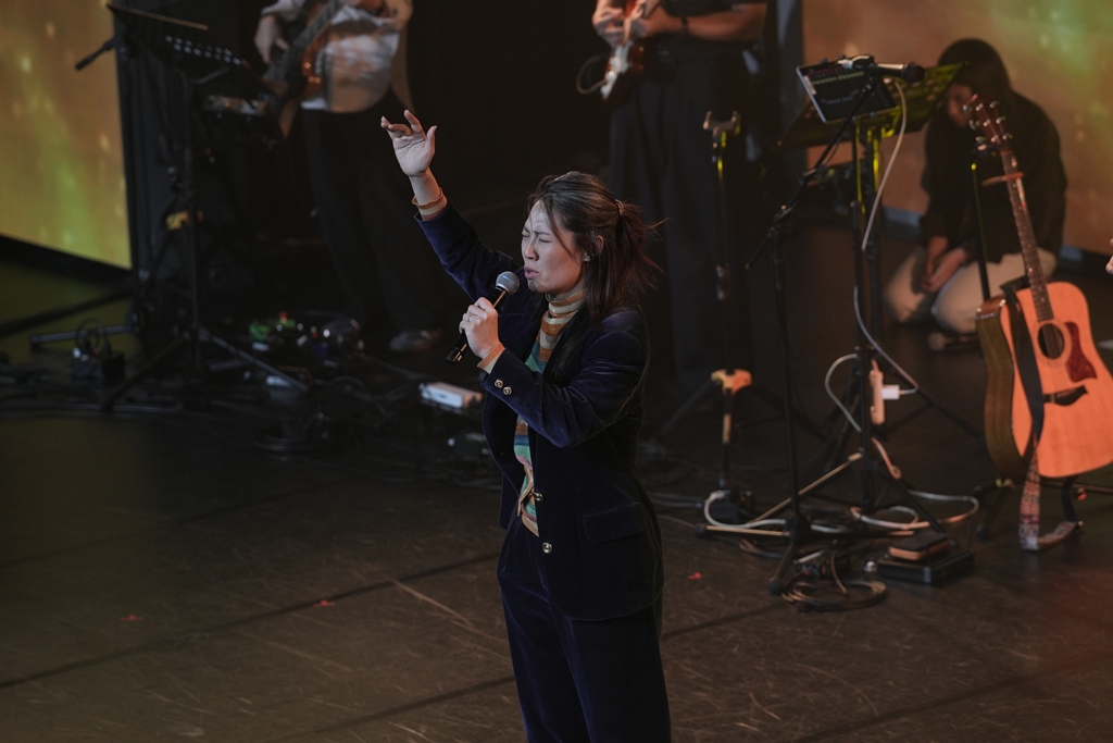 寇紹恩帶領會眾轉眼定睛在祂裡面,進入一。真正的攔阻是「我」的堅持、看見與想法:「什麼時候看自己,看自己的服事,包括有沒有跟得上我,都從寶座上下來,放掉你我他,專注於主的身上,唯一的攔阻就是『我』。」