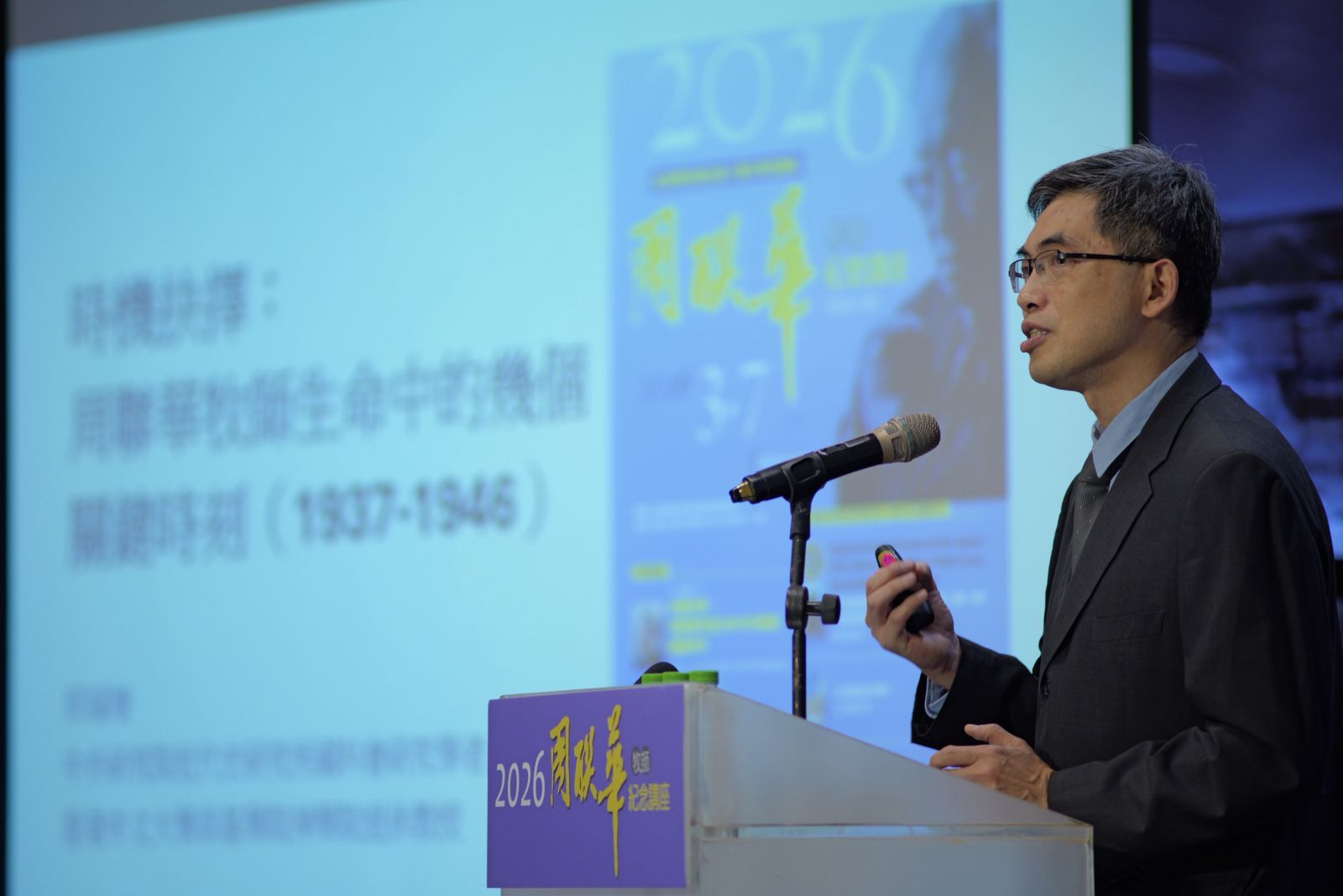 上午場紀念講座由中央研究院近代史研究所學者邢福增老師主講,題為「時機抉擇:周聯華牧師生命中的幾個關鍵時刻」。邢老師以神學中「Kairos(時機)」的概念為切入點,帶領聽眾回顧周牧師生命中幾個重要抉擇,包括在愛國與宗教之間、合一與分離之間以及文化與信仰之間的張力。