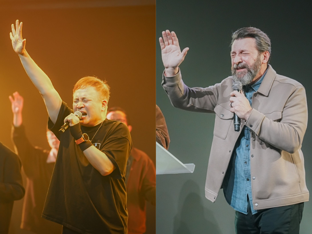 回應異夢,周巽光牧師(左)祈求台灣教會領受膏油,不再彼此耗損。Matt Lockett牧師(右)看見復興的火從家庭點起。圖:國度復興合一禱告聯盟及台北靈糧堂Daniel牧師引述耶穌最後的禱告: