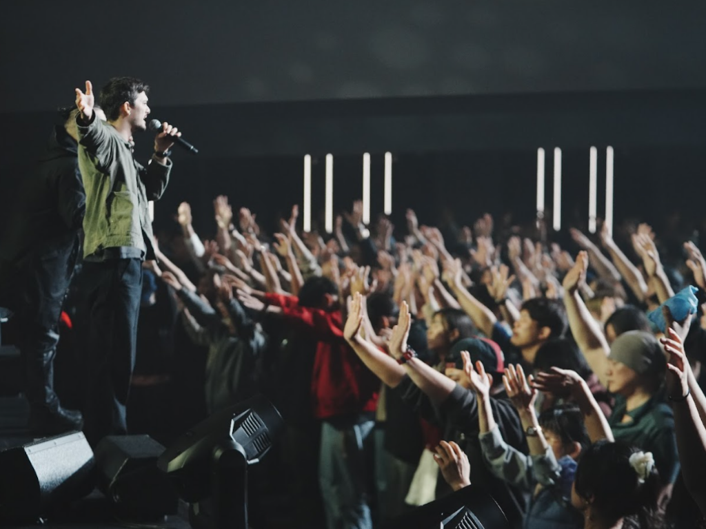 David牧師(左)邀請弟兄姊妹一起舉手,同心禱告。圖:台北靈糧堂回想起 12 年前,他跟神立約。神問:「我給你美國的年輕人,你會做什麼?建立自己王國?」他回應:「我不會保留,我會獻給祢,他們將列國交給祢。」如今神問他同一個問題:「我給你台灣的年輕人,你會做什麼?」他這次也回答:「我不會保留,我會全部歸給你,他們將福音傳回耶路撒冷。」